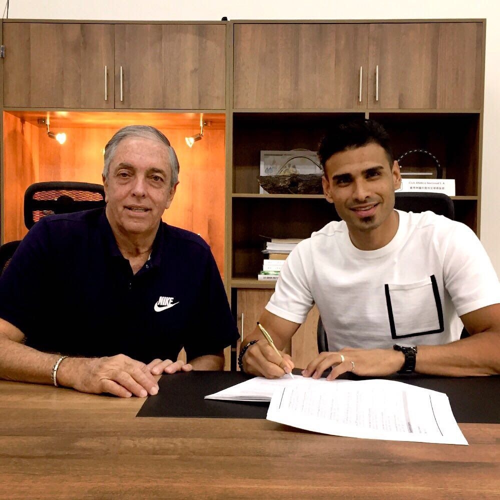 La cuenta de la red Twtitter del club de Medellín le dio la bienvenida a Monetti y publicó una fotografía en la que se observa al guardavallas cuando firmaba su contrato.