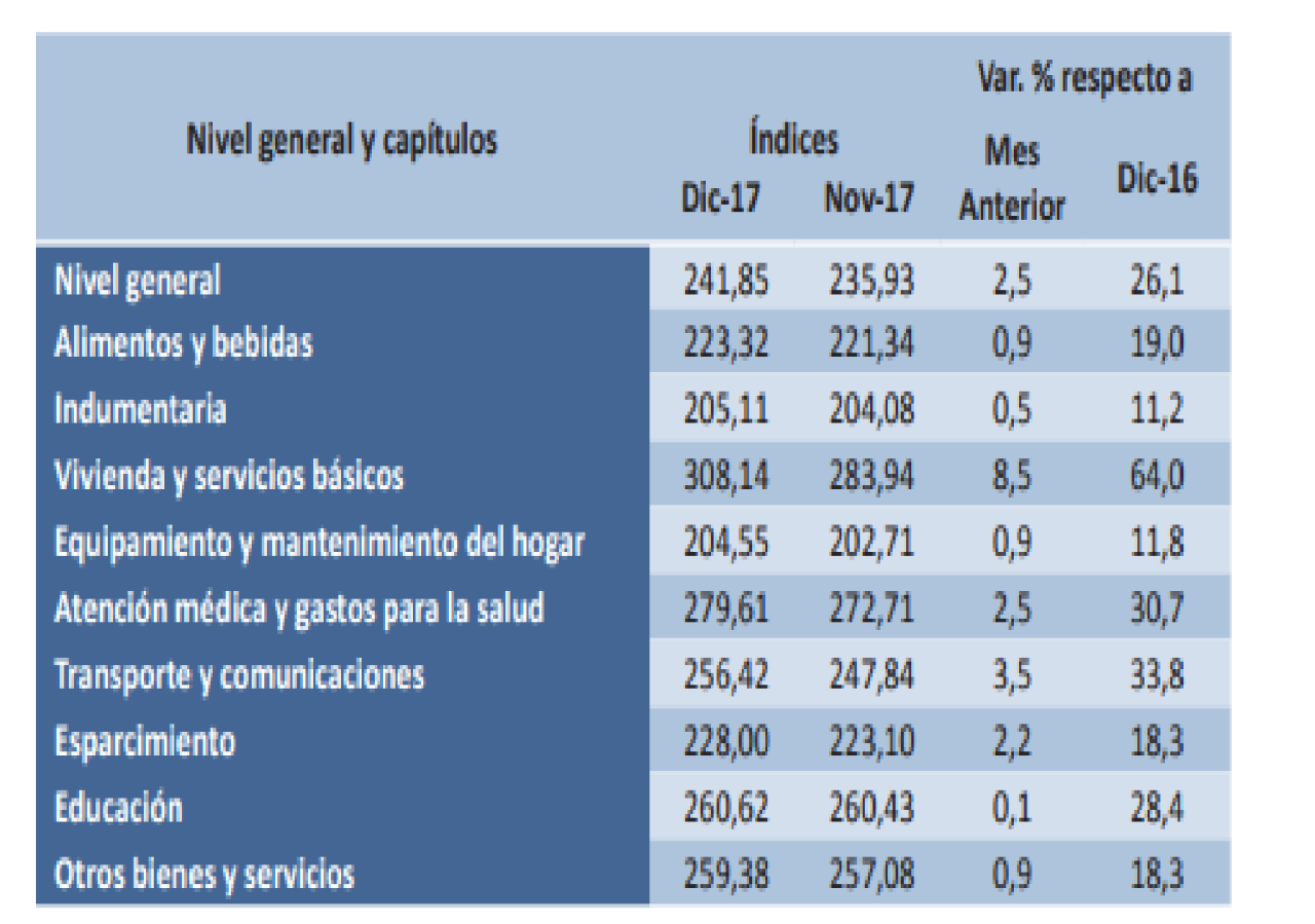 La inflación de diciembre último en Santa Fe fue de 2,5% con relación a noviembre, mientras que el acumulado desde diciembre de 2016 fue de 26,1%, según datos publicados por el Instituto Provincial de Estadística y Censos.