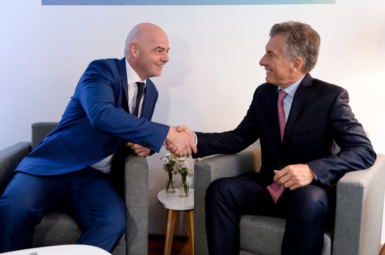 El presidente e Infantino dialogaron además acerca de la intención argentina de organizar el Mundial 2030 junto con Uruguay y Paraguay, a 100 años de la primera Copa del Mundo celebrada en 1930 en el país vecino del Río de la Plata.