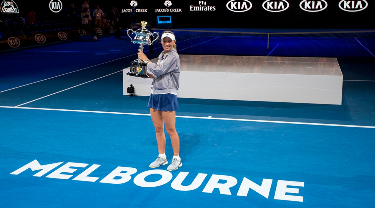 La danesa Caroline Wozniacki, de 27 años, ganó este sábado su primer título del Grand Slam al vencer a la rumana Simona Halep, en dos horas y 49 minutos, en la final del Abierto de Australia, por 7-6 (7-2 el tie break), 3-6 y 6-4.