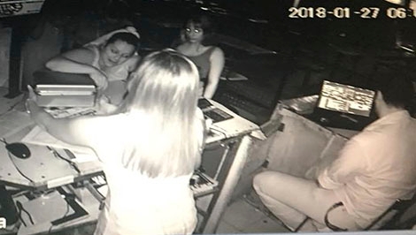 Otros videos, de un bar cercano, muestra cómo dos chicas piden a la encargada de la caja que les guarde un maletín con maquillajes, que sería parte del botín robado.