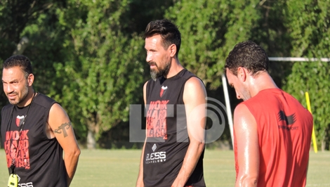 Eduardo Domínguez comandó la práctica de fútbol del día de hoy con algunas variantes respecto al equipo que debutó en el 2018. Una de ellas es obligada por la expulsión de Gustavo Toledo, a su lugar lo ocupó Lucas Ceballos, el ex Godoy Cruz.