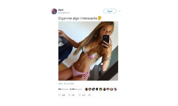 La rosarina Abril Billone publicó una foto en bikini a través de su cuenta de Twitter junto al texto: "Diganme algo interesante", si bien recibió muchos halagos por su figura, las respuestas de los usuarios no fueron las que ella más esperaba.