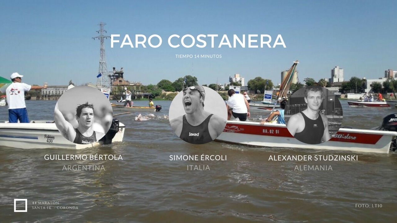 La carrera tuvo un comienzo sumamente parejo. Bertola tomo la posta antes de llegar al faro, luego Studzinki le quitó el primer puesto al argentino a la altura del puente colgante y en el club Regatas Barbara Pozobón trepó a la primera posición.