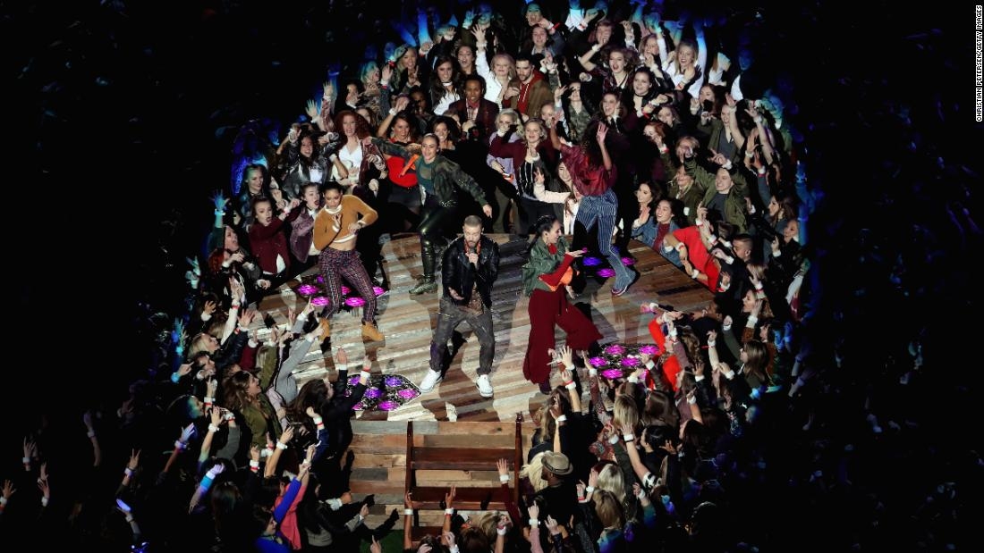 Mientras que muchos artistas del Super Bowl apuestan fuerte en la pirotecnia, Timberlake exhibió sus habilidades de baile, abriendo el espectáculo en un laberinto de láser similar a un club nocturno mientras cantaba su reciente sencillo "Filthy".