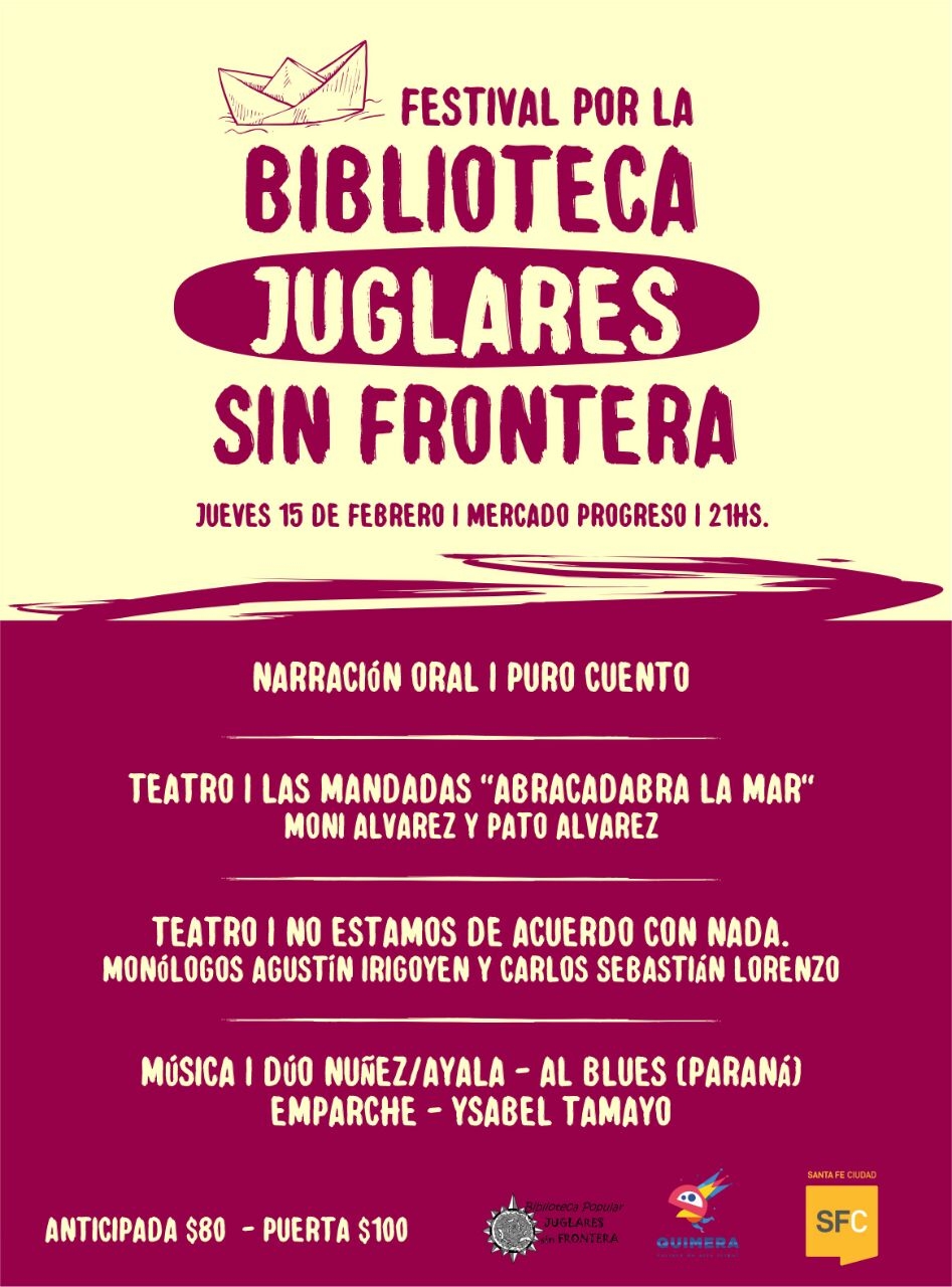Este jueves 15 de febrero se realizará un festival en beneficio de la Biblioteca. Desde las 21, y con el pago de un bono contribución, se podrá disfrutar de narraciones orales, cuentos, taroteadas a la gorra y música en vivo.