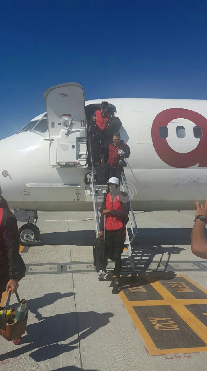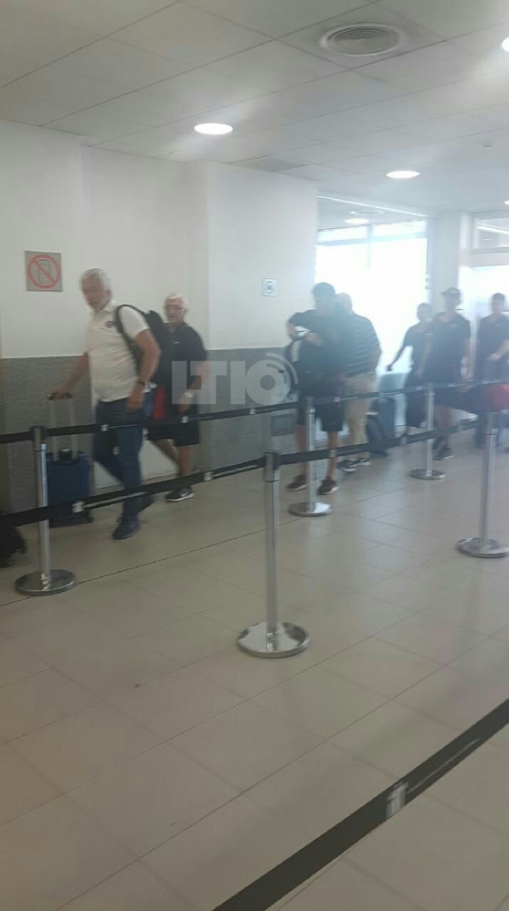 El avión aterrizó en medio de una gran algarabía del público sabalero, que le puso mucho colorido a la llegada de la delegación en el Aeropuerto de Rosario.