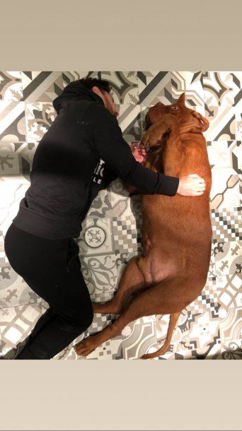 A través de su cuenta de Instagram, “la pulga” compartió una sesión de fotos caseras junto a su mascota, cuidando también a uno de los hijos de Messi.