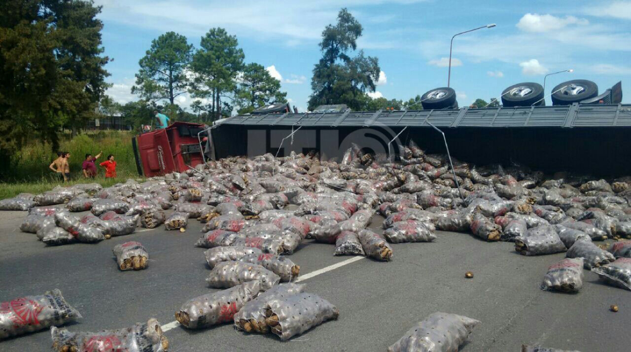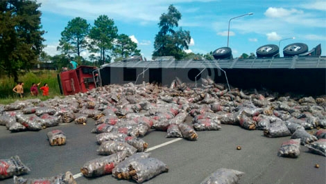 Un accidente en la autopista Santa Fe-Rosario a la altura del complejo La Tatenguita dejó el asfalto de la mano que se dirige hacia la capital cubierto de papas, en horas del mediodía.