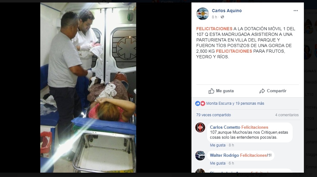 Si bien no trajeron a la beba al mundo, fueron los encargados de realizar las primeras maniobras posteriores al nacimiento. Además, fueron quienes recibieron todas las felicitaciones y elogios en las redes sociales.