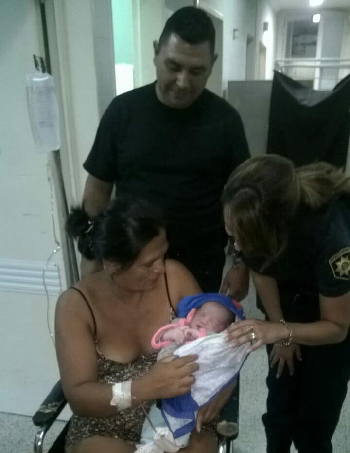 Minutos más tardes, arribó la ambulancia y los enfermeros manifestaron que la situación no se podía demorar más y por ello junto a los agentes policiales emprendieron a realizar las tareas de parto, donde momentos después la mujer dio a luz a un niño. Aaron Noah Cruz nació sin inconvenientes y pesó 4,200 kg.