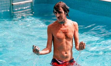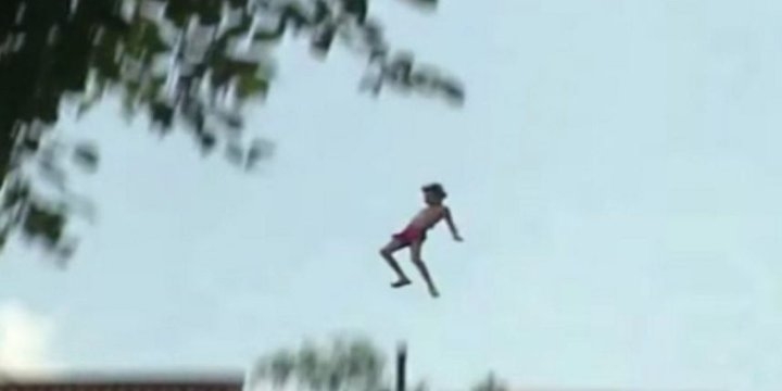 Después fue su turno. Voló casi 20 metros y cayó en una pileta que tenía tres metros de profundidad. Eran las 12.30 del mediodía y llevaba una malla roja, estaba descalzo y la cara pintada con manchas blancas y rojas.