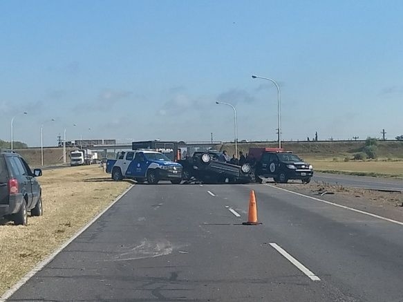 Un grave accidente se produjo este sábado por la mañana en la autopista Rosario-Santa Fe, a la altura de la ciudad de San Lorenzo. Un auto dio un espectacular vuelco en el momento en el que habría intentado superar a un camión. El conductor del auto murió en el acto producto del impacto, mientras que su acompañante fue trasladado e internado con politraumatismos.
