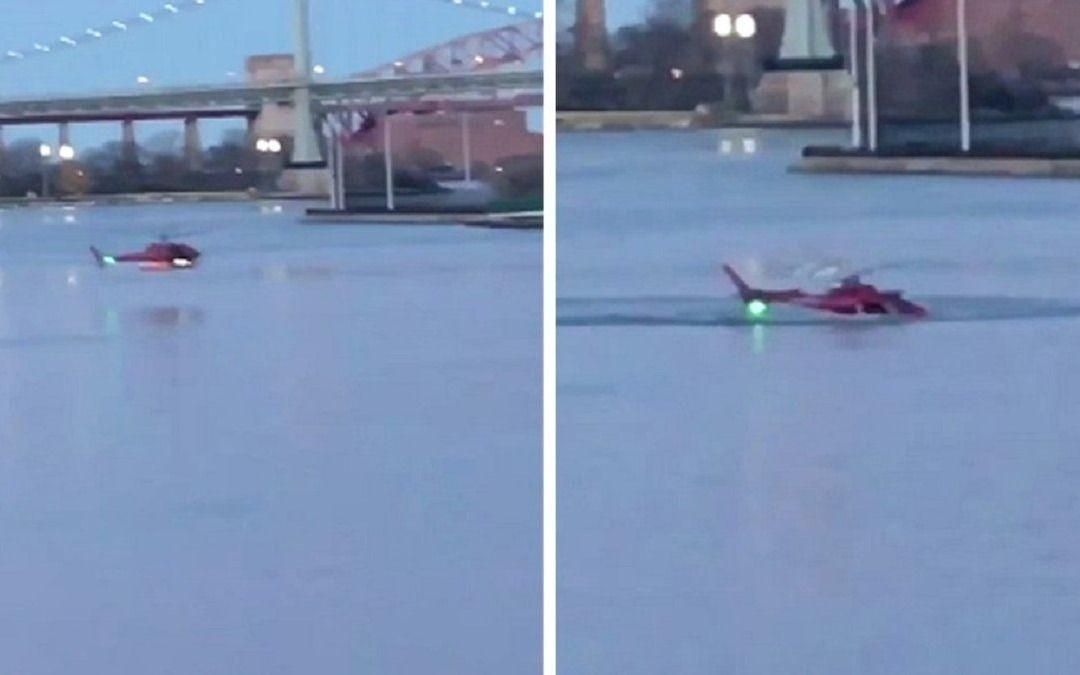En un video casero que circula en las redes sociales se observa cómo el helicóptero, un Eurocopter AS350, va perdiendo altura sobre el río hasta caer sobre el agua.