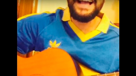 Antes del partido en Mendoza, con guitarra y camiseta, el hincha grabó la canción y la subió a YouTube.