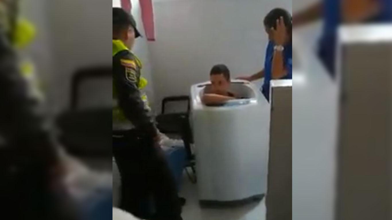 Un nene colombiano se quedó atrapado en un lavarropas al intentar realizar un reto que había visto a través de Internet.