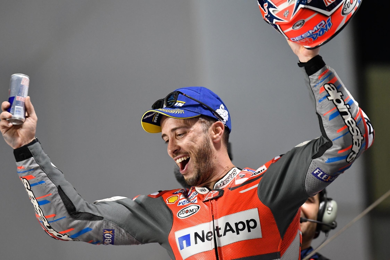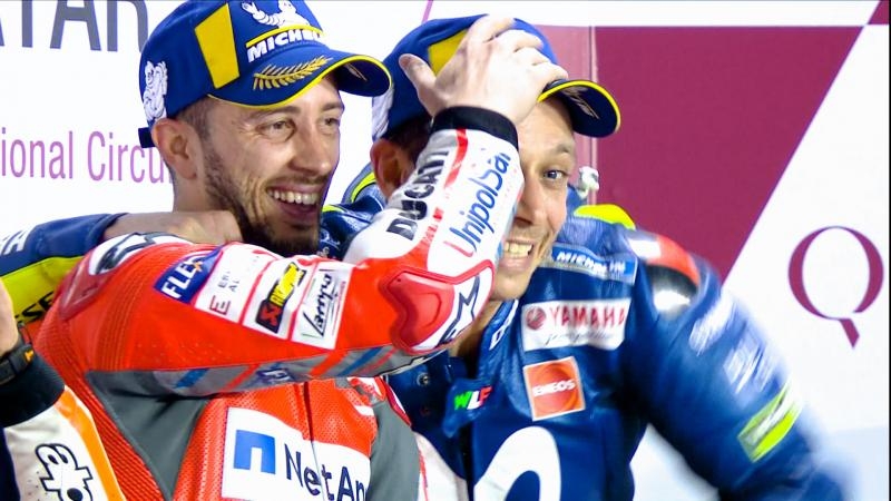 Abriendo la temporada con una actuación sensacional en la última vuelta, Andrea Dovizioso (Ducati Team) venció sobre la línea de llegada a Marc Márquez (Repsol Honda Team) en el circuito internacional de Losail por una diferencia de tan sólo 0.027s, mientras Valentino Rossi (Yamaha MotoGP Movistar) completó el podio.