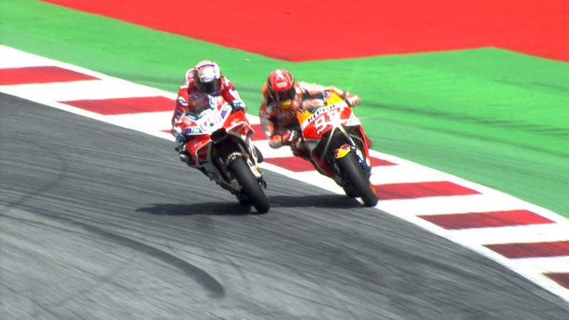 La acción no terminó ahí, con Dovizioso y Márquez acelerando en la curva final de la última vuelta. El actual campeón mundial Márquez lo superó en la curva 15 pero no pudo sostenerlo y Dovizioso superó la línea de llegada con una ventaja de apenas 0.027s.
