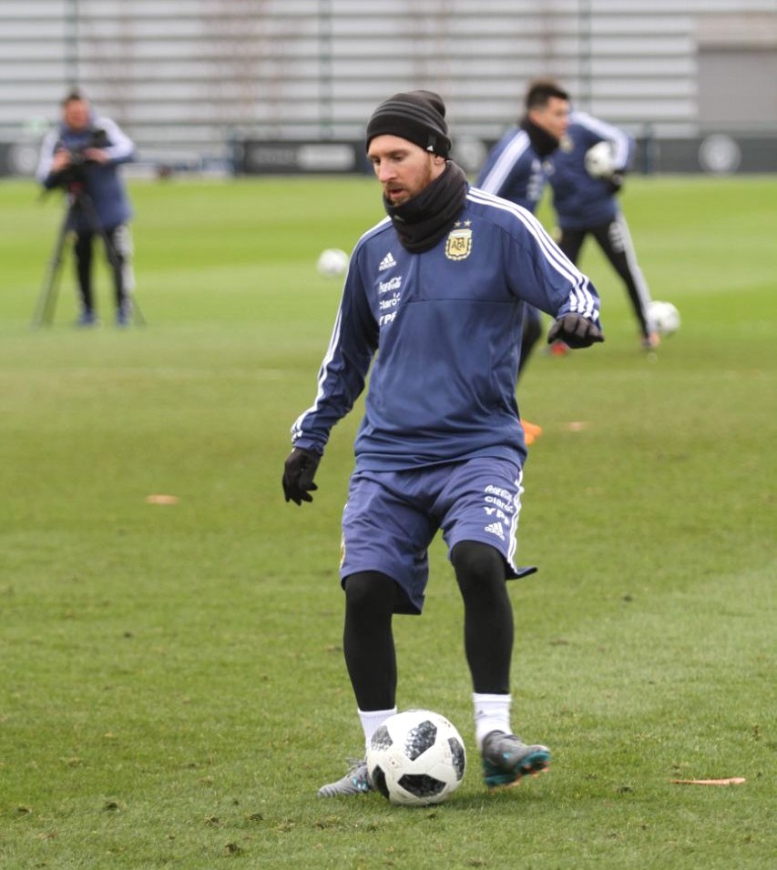 En el segundo turno y ya con el plantel completo tras el arribo del capitán, Lionel Messi, el entrenador dispuso un ejercicio táctico donde probó la primera formación para el duelo del viernes.