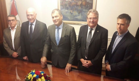 El ex presidente de Ecuador Rafael Correa visita desde esta mañana nuestra capital. En horas de la siesta recibió la distinción de Huésped de Honor por parte de la Cámara de Diputados de Santa Fe, y por la tarde estaba previsto que brindara una charla abierta sobre movimientos populares latinoamericanos en la sala Garay (sita en el Colegio Inmaculada).
