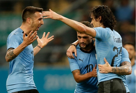El seleccionado "Celeste" se impuso con dos goles anotados en el primer tiempo por sus delanteros, el primero a los 10 minutos marcado por Luis Suárez, de tiro penal, y el segundo a los 37 a través de Edinson Cavani y tras una pelota recuperada por Nandez, quien fue titular en el mediocampo junto a otro ex Boca, Rodrigo Bentancur.