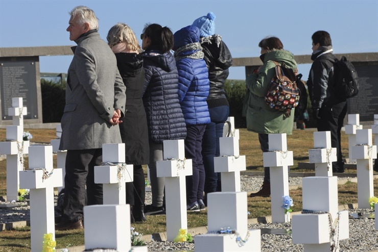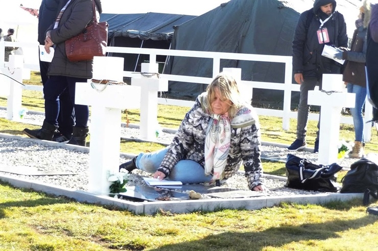 La delegación de 248 personas, entre familiares, autoridades, psicólogos y periodistas, volaron a las islas en el Atlántico Sur en tres aviones para rendir homenaje ante las tumbas identificadas.