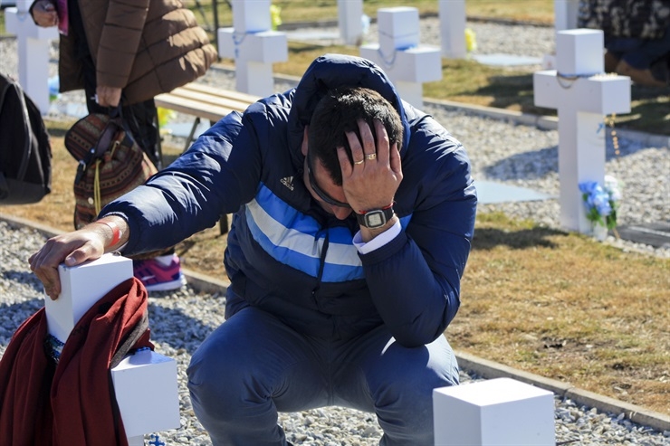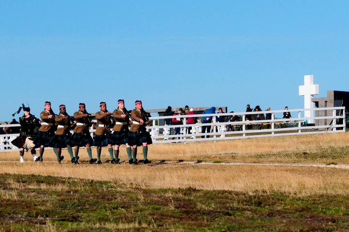 Los familiares de 90 soldados argentinos sepultados como NN en las islas Malvinas pudieron despedirlos ante las placas con su nombre luego de que sus restos fueran identificados por la Cruz Roja en el cementerio de Darwin.