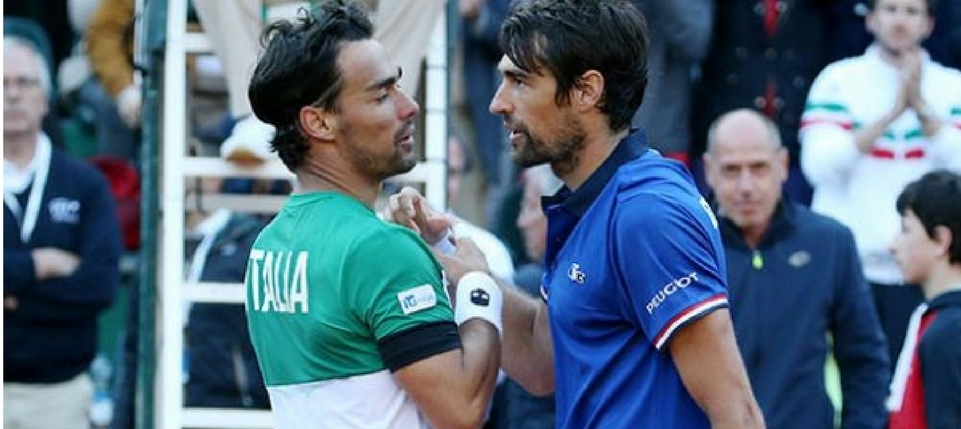 Italia y Francia empatan a un punto tras las victorias de sus respectivos números 1, Fabio Fognini y Lucas Pouille, este viernes en la primera jornada de la eliminatoria de cuartos de final de la Copa Davis disputada en Génova.