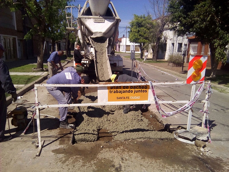 En este marco, continúan los trabajos de bacheo hormigón en 9 de Julio al 1900, San Martín y Mendoza, y Tacuarí y Pedro de Vega.
