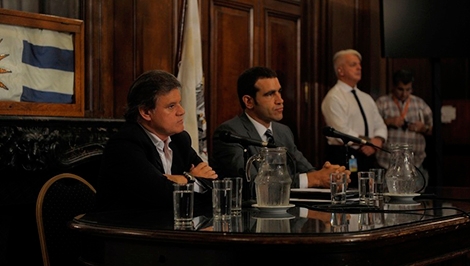 Enrique Sacco, viudo de Débora Pérez Volpin, y el abogado Diego Pirota, brindaron una conferencia de prensa en el Salón Montevideo de la Legislatura de Buenos Aires en la que ratificaron que las pericias determinaron que la periodista y legisladora murió por perforaciones en el esófago.