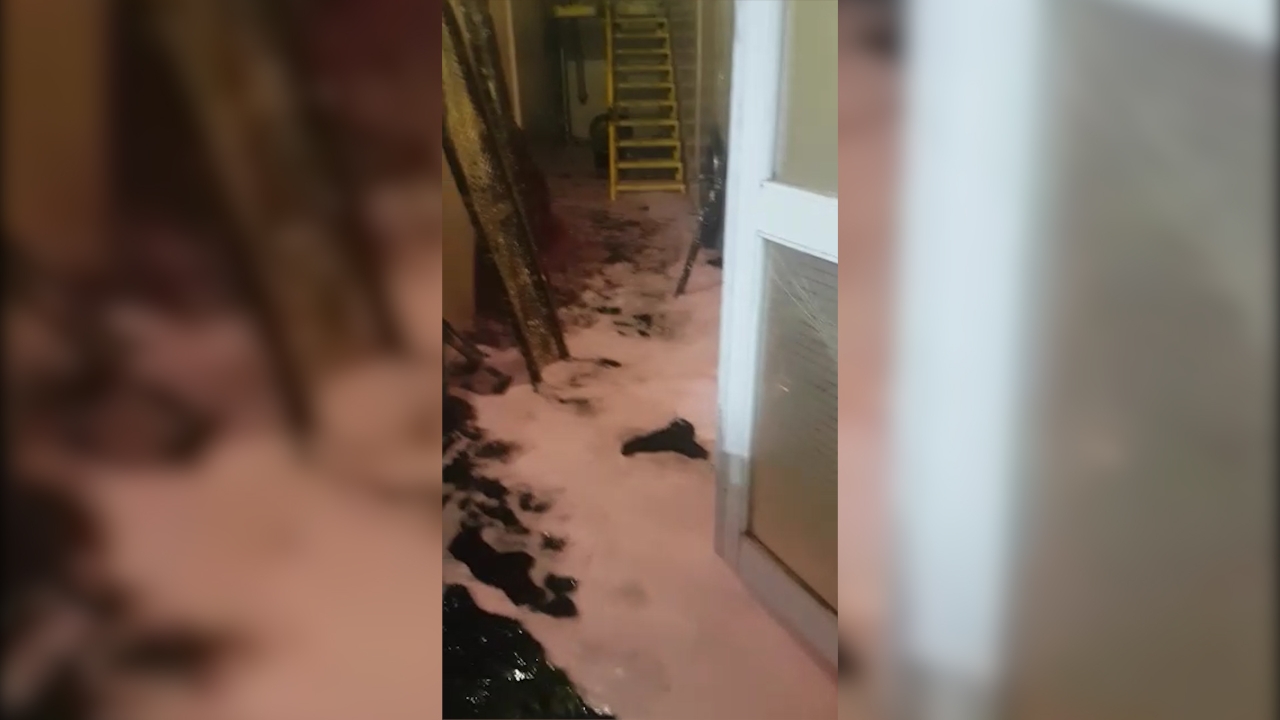 Las imágenes muestran cómo miles de litros de vino tinto fluyen a gran velocidad por la planta, lo que significa la pérdida del producto y daños en el lugar.