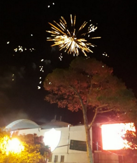 Los fuegos artificiales le dieron el colorido a la gran fiesta de los tatengues, que luego tuvo en escena a los Tateinómanos y Los Llamadores, que interpretaron un repetorio cargado de música rojiblanca.