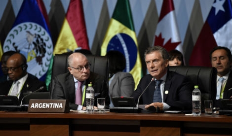 Tras la acción militar anunciada por el jefe de la Casa Blanca, Donald Trump, como respuesta a la presunta utilización de armas químicas contra la población civil por parte del mandatario sirio, Bashar al Asad, el mandatario manifestó la postura argentina al leer un comunicado de la Cancillería durante su exposición en la Cumbre de las Américas que se realizó en la ciudad peruana de Lima.