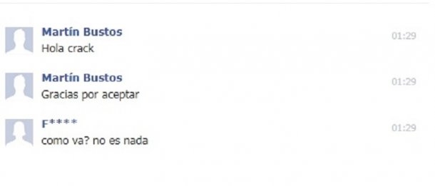 En los chats filtrados -que ocurrieron el 17 de marzo, una semana antes de que se ordene su detención- se ve que es el detenido quien envía la solicitud de amistad a ese menor de edad. Que sabe que asiste al colegio de Independiente. Una vez entre la lista de sus amigos, Bustos también es quien inicia la conversación.