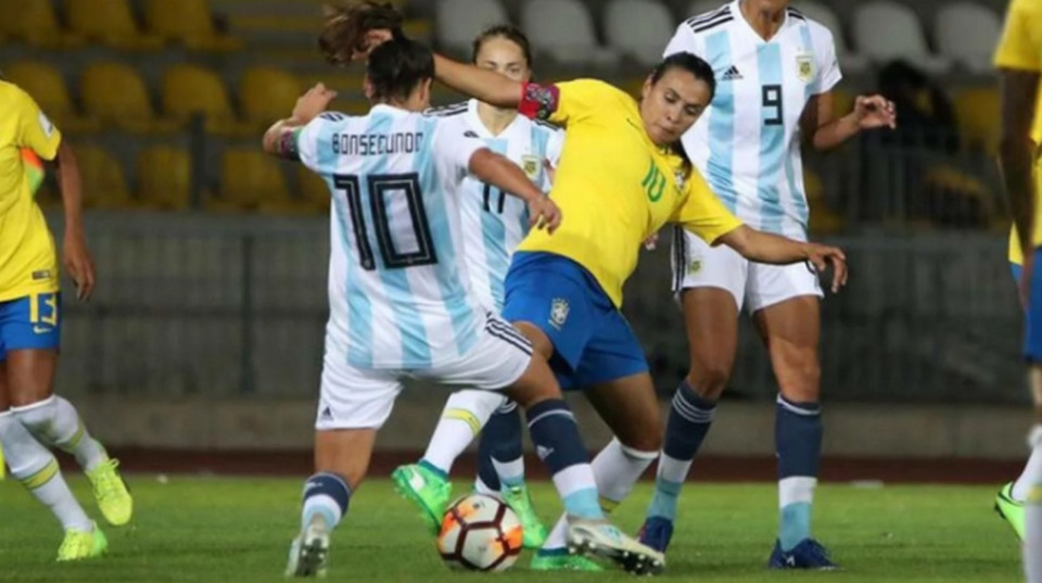 En el fútbol masculino Argentina y Brasil es un clásico entre dos potencias y muy parejo, pero a nivel femenino Brasil, octavo en el ranking mundial de FIFA, es claramente superior a Argentina que está 37ma.