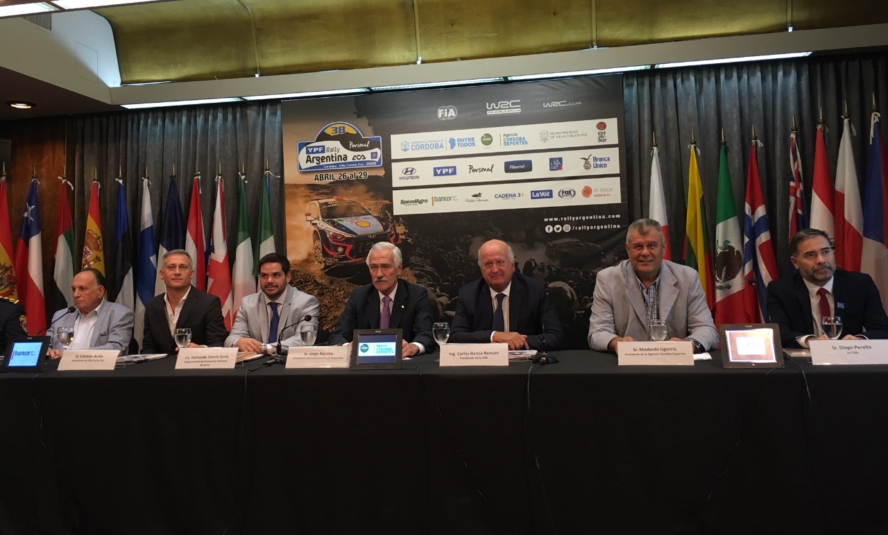 El subsecretario de Promoción del Ministerio de Turismo de la Nación, Fernando García Soria, y el presidente del ACA, Jorge Rosales, participaron del lanzamiento oficial del Mundial de Rally FIA WRC Argentina 2018, lo acompañaron el intendente de Villa Carlos Paz, Esteban Aviles; el coordinador General del Rally, David Eli; el presidente de la Agencia Córdoba Deportes, Medardo Ligorria, y el presidente de la Comisión Deportiva Automovilística (CDA) del ACA, Carlos García Remohí.