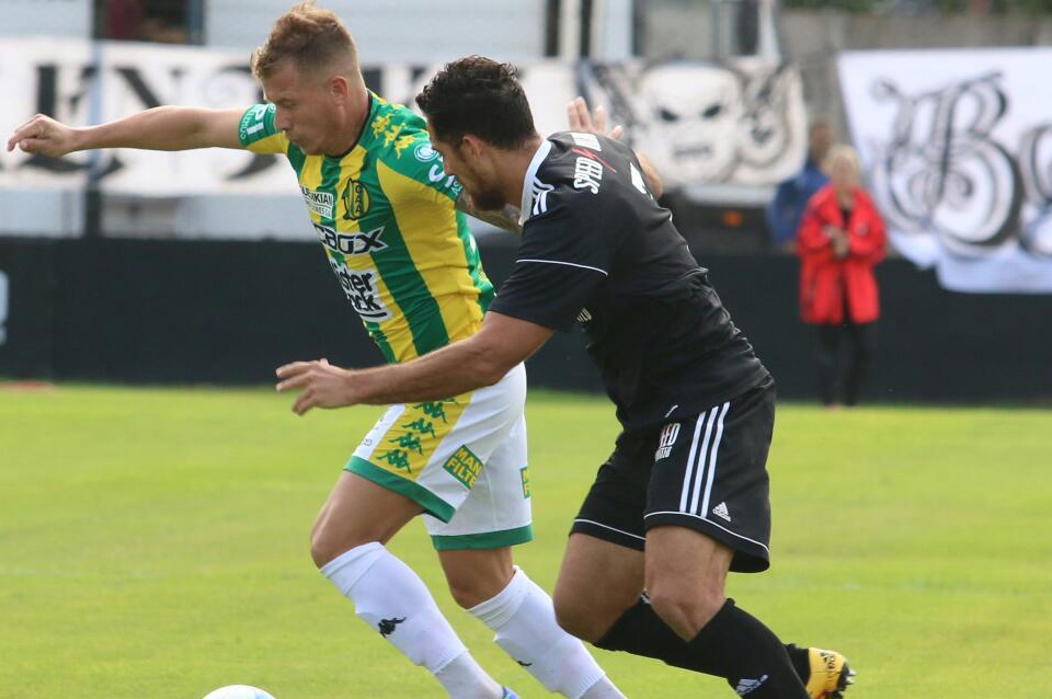 Aldosivi perdió esta tarde con Deportivo Riestra por 1 a 0, en un partido correspondiente a la vigésimo cuarta fecha del torneo de la Primera B Nacional, y ahora Almagro quedó a un paso del ascenso si es que gana en la última jornada.