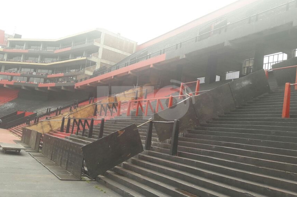 La tribuna baja norte del estadio sabalero lucía hoy una serie de tablones negros formando un rectánculo que permanecerá vacío durante todo el encuentro de Colón y Patronato, y el próximo ante River que se disputará de local.