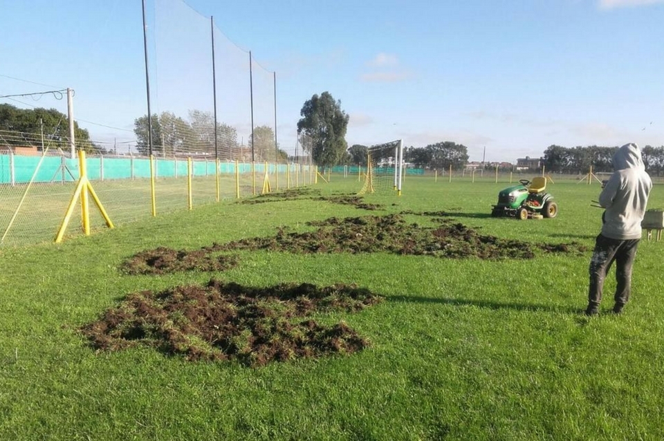 Rompieron una cancha ¡buscando lombrices!