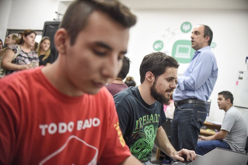 Hoy, los alumnos que participan del curso 111Mil recibieron la visita del intendente José Corral, en el CIC ubicado en Facundo Zuviría 8040.