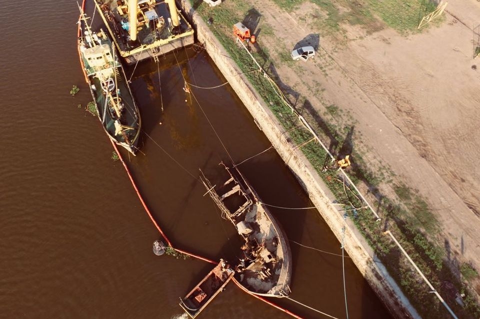 Se trata de un buque arenero que se hundió el 2 de febrero de 2002 en el Dique 1.