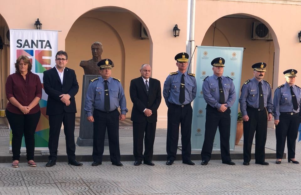 El acto, que tuvo lugar en el patio de armas de la URI, en la capital santafesina, contó también con la presencia del jefe de Policía, director general Marcelo Villanúa, el jefe saliente, director de Policía Luis María Siboldi,y la subsecretaria de Formación y Desarrollo Policial, Ana Viglione, entre otras autoridades.