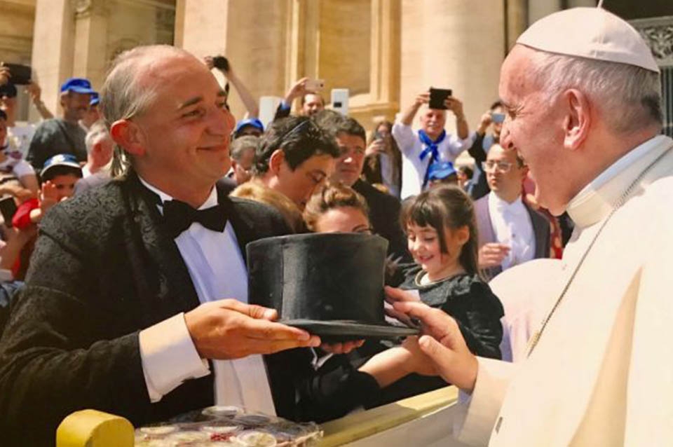 Pablo Cabaleiro, más conocido como “El Mago sin dientes“, cumplió su sueño y llegó al Vaticano, donde se encontró con el Papa Francisco, quien bendijo su galera.