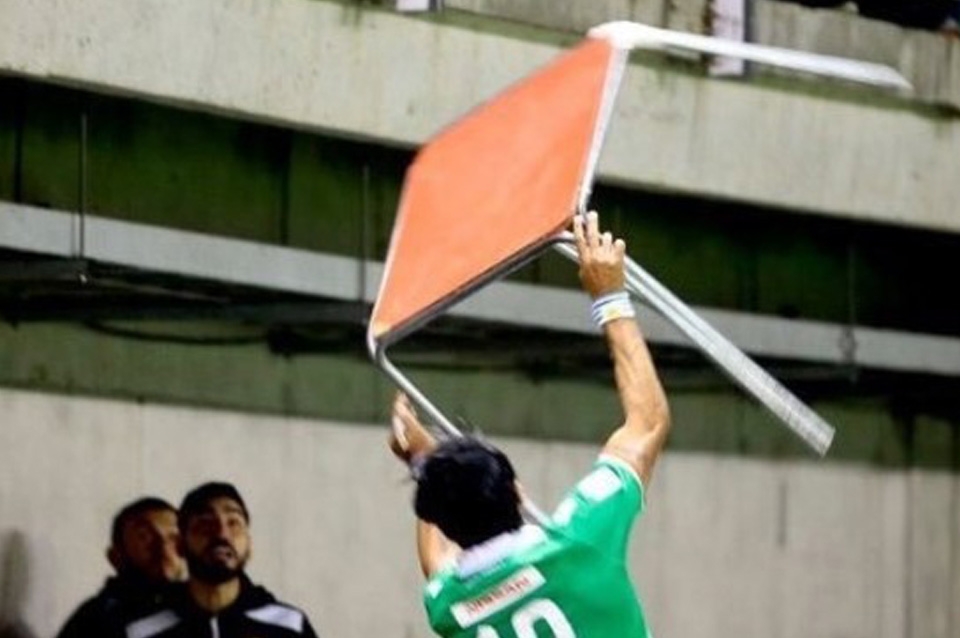 Primero, el uruguayo se paró frente a la platea, respondió a los insultos y antes de irse tomó una mesa que estaba al costado del campo de juego y la arrojó contra la platea, asombrando a más de uno.