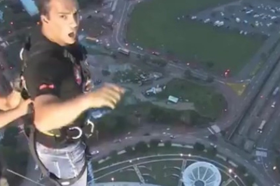 El cantante guatemalteco se animó a tirarse de un edificio súper alto en Londres y grabó el insólito momento. Mirá el video.