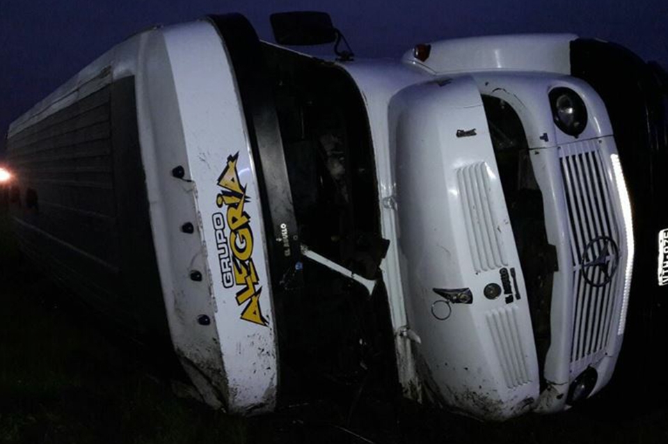 El Grupo Alegría de Santa Fe sufrió un accidente este domingo a la madrugada cuando el colectivo en el que viajaban tumbó en provincia de Buenos Aires, a la altura de Ramallo. Según contaron los propios integrantes de la banda regresaban de un show en Campana cuando por causas que se tratan de establecer, el micro terminó en la banquina, tumbado de costado.