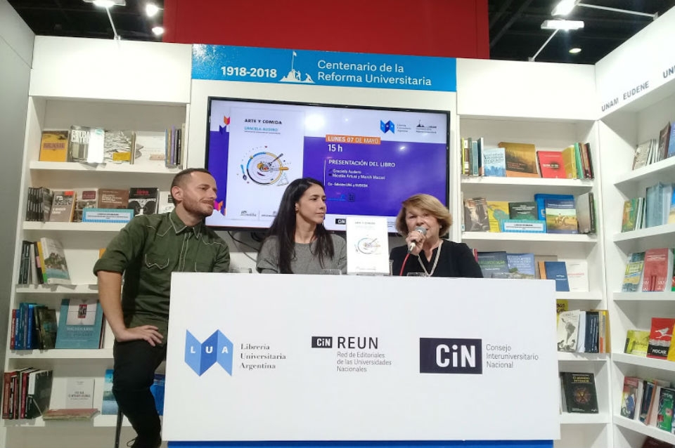 "Arte y comida", de Graciela Audero, se presentó a las 15. La obra fue coeditada entre Ediciones UNL y Eudeba, y pertenece a la Colección Itinerarios. La presentación estuvo a cargo de los periodistas Nicolás Artusi y March Mazzei. En tanto hechos culturales, la comida y el arte están ligados a la historia de los hombres, al pasado y al presente, a la experimentación y a la innovación, a los sentidos y las emociones.