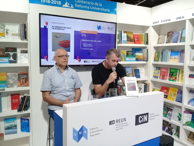A las 17, fue el turno de “Al comienzo era sólo un murmullo”, de Fabián Iriarte, con la presentación del docente, escritor e investigador Santiago Venturini. "Al comienzo todos los poemas son sólo un murmullo obstinado. Los poemas de Fabián Iriarte nacen de ese murmullo, pero toman una forma definitiva: pesan como las piedras, son blandos como las flores. Los versos afirman, registran, pero hacen, sobre todo, algo más: consiguen una lengua que pasa de lo grave a la liviandad, que es seria, pero se burla de la seriedad".