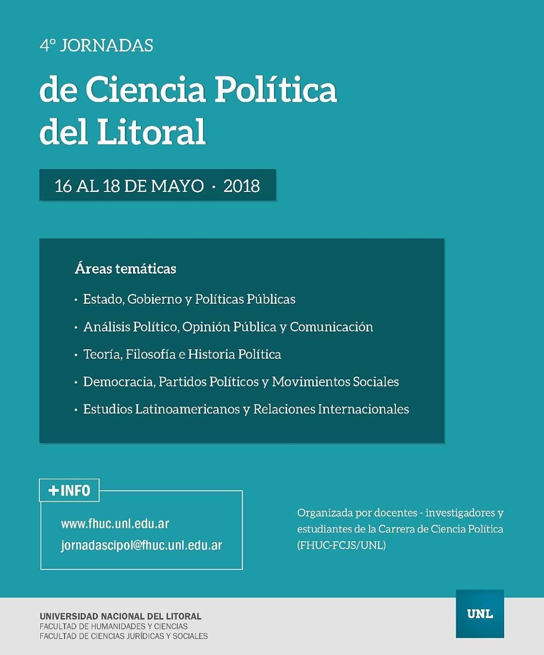 Por consultas, los interesados pueden contactarse a jornadascipol@unl.edu.ar .
