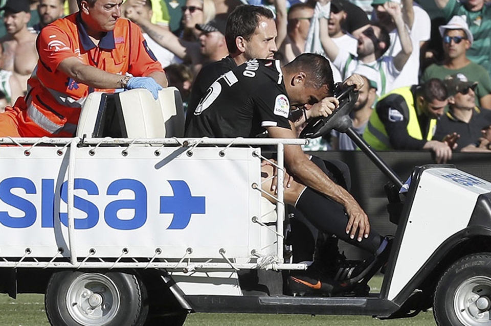 A los 45´ el ex River tuvo que dejar la cancha aquejado por un fuerte dolor en su espalda, tras un remate fallido en ataque, cuando su equipo perdía por 1 a 0 ante el Betis.
